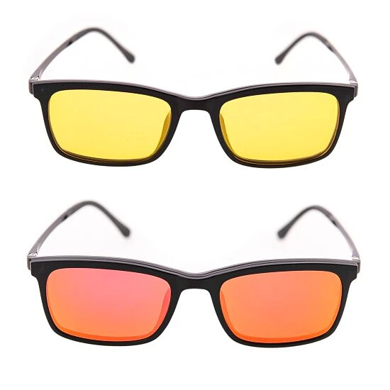 Gelb erweitert die Pupille und erhöht den Kontrast. Der Einsatz der gelben Farbbrille soll dementsprechend eine aufmunternde und stimulierende Wirkung erzielen. Sie ist die Konzentrations-Brille.