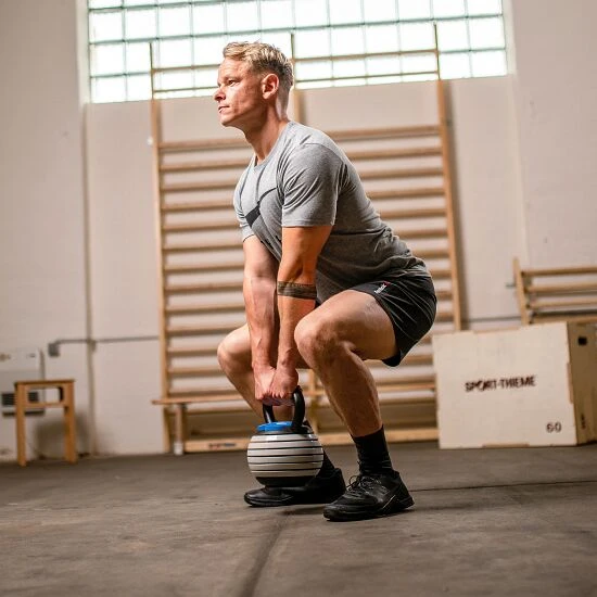 Das Fitness-Training mit der Kettlebell gehört zu den beliebtesten Übungen, um effektiv Muskeln aufzubauen. Mit der Sport-Thieme Kettlebell „Vario“ ist es nun möglich in verschiedenen Gewichtsstufen zu trainieren. Und das mit nur einer Kettlebell. Denn nicht alle Muskeln in Ihrem Körper sind gleich stark. Deshalb ist es umso wichtiger, mit verschiedenen Gewichten zu arbeiten. Um ein effektives Muskeltraining zu erzielen, bräuchten Sie zahlreiche Kettlebells in unterschiedlichen Gewichtsstufen. Dieses Problem wurde mit dieser Kugelhantel gelöst. Viele Gewichtsstufen in nur einer Kettlebell! Ein weiterer Vorteil: Sie sparen Platz.